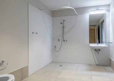 Internally, the facility is equipped with advanced technology to assist people with high physical needs. Features include facial recognition access, voice activated controls and heavy duty ceiling hoists to transport participants safely from their bedroom to the bathroom.